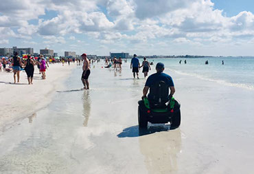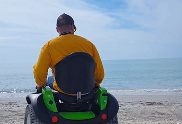 It comes in a standard set up that fits through standard doorways and will take you most places, but by changing to the additional Off-Road-Kit, you can go almost anywhere - tackling soft sand, gravel, and rough terrains and inclines within minimal impact on the flora delicate surfaces.
