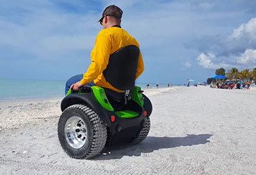 Designed and built with the best safety and unique features of any self-balancing personal transportation device. The powerful two-wheeled self-balancing platform means you travel over uneven terrain, scale inclines and navigate troughs, while always remaining level in your seat - giving you access to places such as beaches, forests, tracks and pathways that would be impossible for most other personal mobility devices.